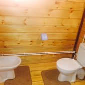 Плюсы: Есть горячая вода, душ и туалет в домике. Завтрак включен. Минусы: Цена сильно завышена. Бассейна как на картинке нет. В бане бассейн страшный с холодной водой. Детская площадка старая и на ней всё сломано...
