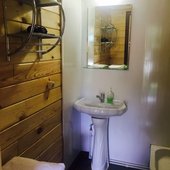 Туалетную бумагу не приносят. Освежителя воздуха нет. Душевая кабина качается, боялись, что свалится. Уборка и смена полотенец только при выезде. В горах всё очень плохо сохнет, так что вытераться мокрым полотенцем приходится.
