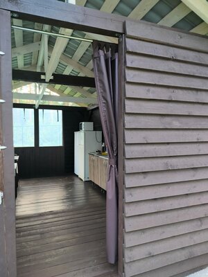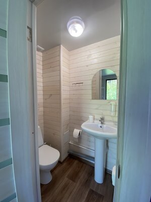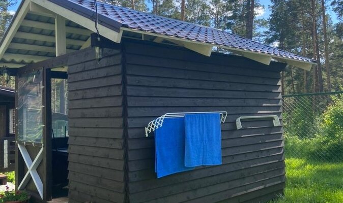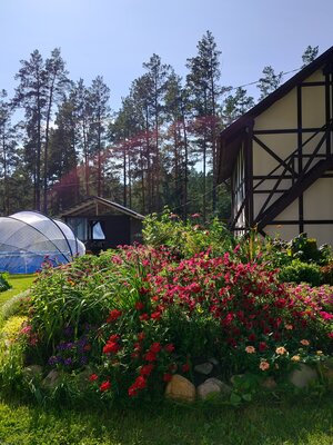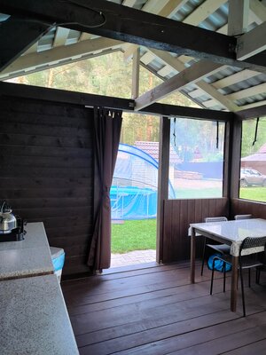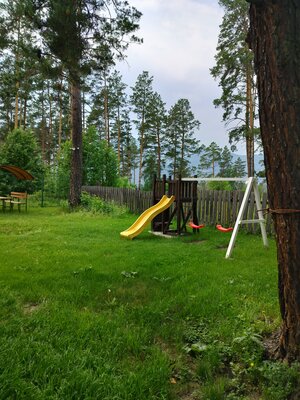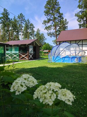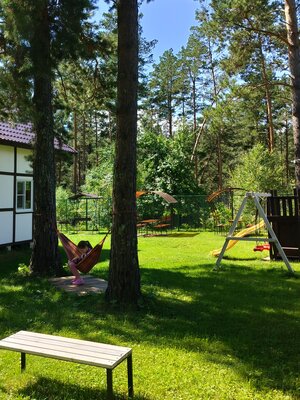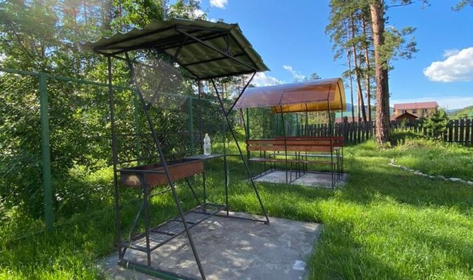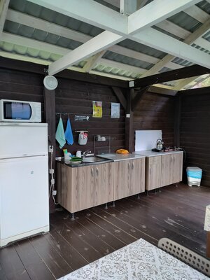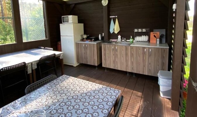 Для приготовления пищи гостям доступна отдельная кухонная зона, где есть необходимая посуда, плита, холодильник, чайник и микроволновка. На территории базы отдыха установлен мангал с решетками и шампурами для пикников на свежем воздухе, также здесь есть гамаки, качели, бассейн, детская площадка, русская баня и парковка для автомобилей.