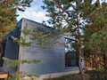 Современная русская баня с панорамным окном на лес и горы.