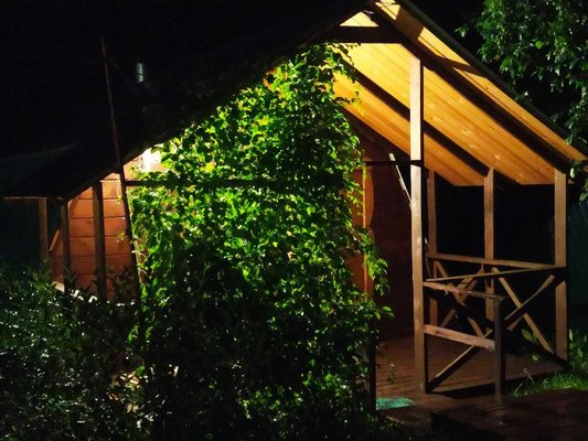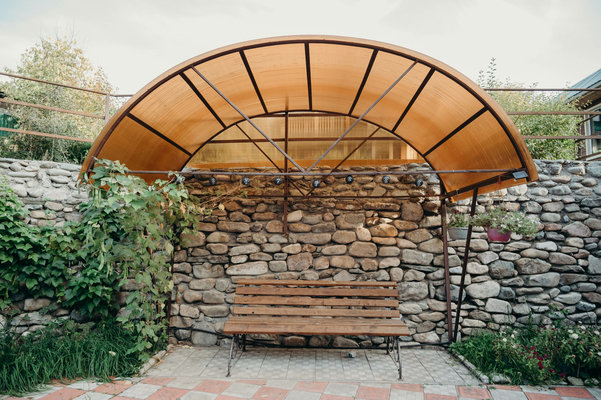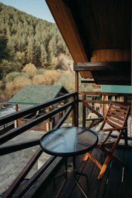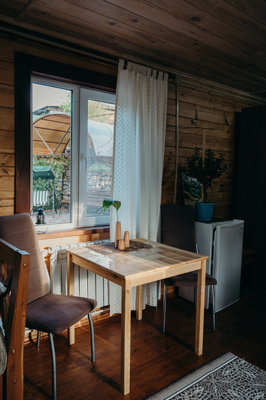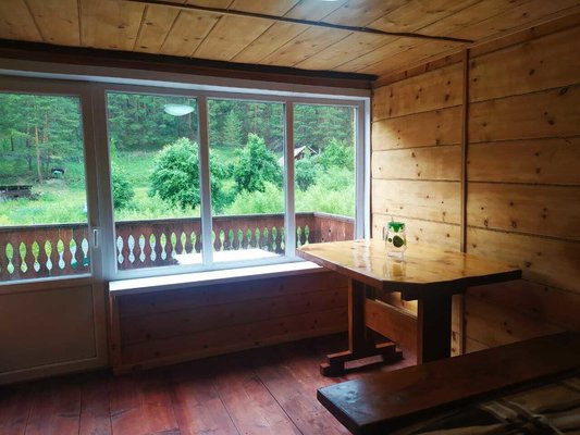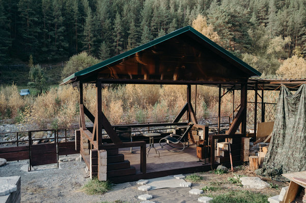 На территории оборудована зона для барбекю, костровая зона и баня из массива кедра с ароматическими маслами и вениками. Рядом находится бассейн и протекает прохладная горная река.