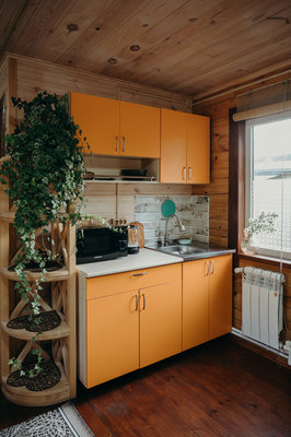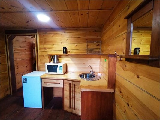На общей кухне-гостиной вы найдете всю необходимую бытовую технику и посуду. Есть стол для больших компаний, где могут разместиться до 10 человек; уютный диван и телевизор. Благодаря тому, что кухня-гостиная отделена от спален, шум телевизора и голоса компании за столом не побеспокоят покой тех, кто ушёл отдыхать.
