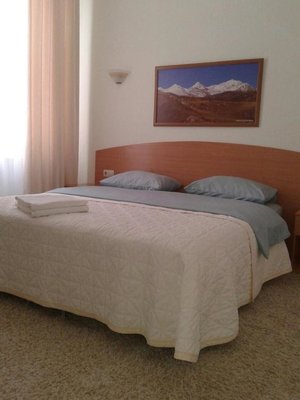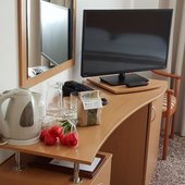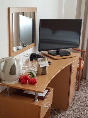 старая мебель, допотопные фены (высушить волосы после бассейна не реально), покрывала на кроватях в пятнах, при отъезде взяли 600 руб за полотенце (не досчитались, хотя полотенца меняли в наше отсутствие и мы ничего под запись не принимали) - очень неприятный осадок остался
