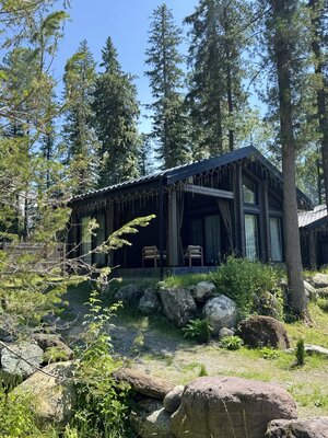 Шале удобно расположено — легкий подъезд с основной трассы, но при этом гарантирует полную уединенность в окружении величественных гор, кедровой рощи и живописной реки Юрток. До Телецкого озера — рукой подать, всего 2 минуты езды!