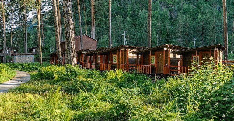 Для проживания база отдыха предлагает уютные деревянные дома, построенные из натурального алтайского кедра, пихты и сосны. Каждый дом гармонично вписан в окружающий ландшафт, утопает в зелени и деревьях, обеспечивая максимальную приватность и уединенный отдых, где соседи не нарушат ваш покой. Большая часть коттеджей – двухэтажные, но есть и одноэтажные варианты, такие как «Кедровый» и «Комфорт+». Все номера полностью оборудованы необходимой мебелью, холодильником и персональным санузлом с душевой кабиной. В ряде домов предусмотрена полноценная кухня, а с террас и балконов открываются захватывающие виды на реку и горы.