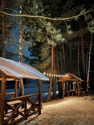 Все беседки расположены на берегу с видом на реку. Всего 7 беседок на 9 номеров. Во всех беседках проведено электричество — в них есть свет и розетка.