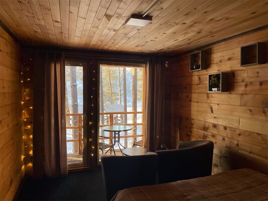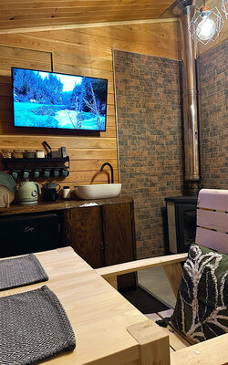 - комната отдыха с камином и панорамным окном на реку Катунь и горы (мебель из массива, ТВ, кухня, вся необходимая посуда, травяной чай, мед);
