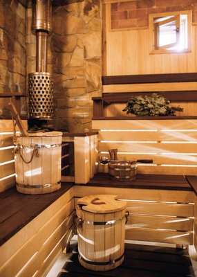 Вместимость до 6 человек. Парная с уникальной инновационной печью прямого нагрева. Горячая и холодная купель.
