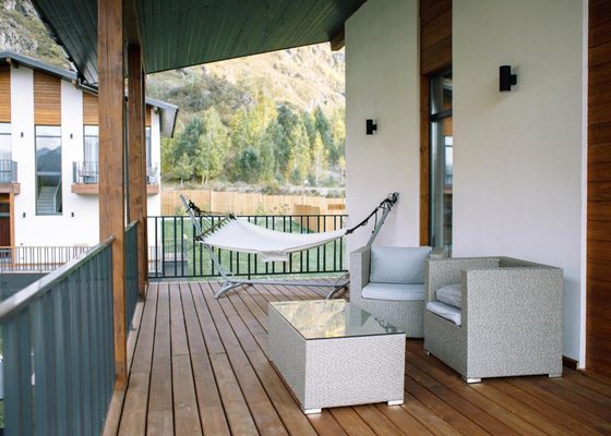 К вашим услугам комфортабельные домики: 5 домов «А-frame» (2-5 человек) и 3 двухквартирных домика «Дуплекс» (включая один на 2-4 человека). Имеются развлечения на любой вкус: пешая доступность к видовым точкам Гремячей гривы, просторная территория для прогулок, детские площадки, теплые и летние беседки, бесплатная мангальная зона.