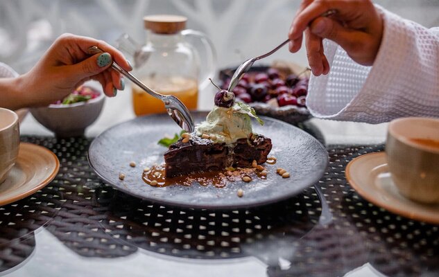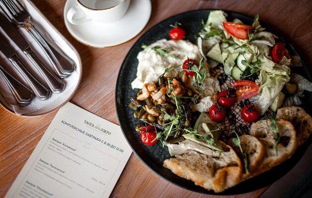 В отеле функционирует ресторан «Озеро» с разнообразным выбором блюд на любой вкус, а также бар, где предлагаются прохладительные напитки и коктейли. Гостей ждет утренний горячий завтрак.
