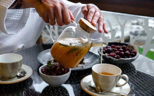 После процедур вы можете окунуться в купель и насладиться полезным контрастом температур и выпить травяной чай, собранный в горах Алтая.