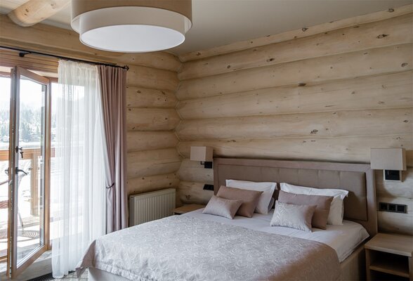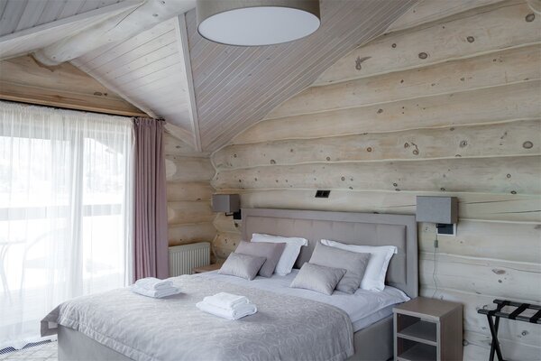 Отель состоит из трехэтажного корпуса, изготовленного из кедра. Все номера оборудованы балконами с прекрасным видом на озеро. В номерах имеется удобная мебель, телевизор, мини-холодильник, чайная станция, собственная ванная с душевой кабиной, фен, халаты и туалетные принадлежности.