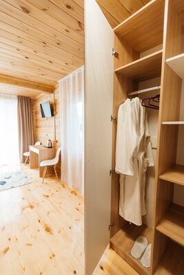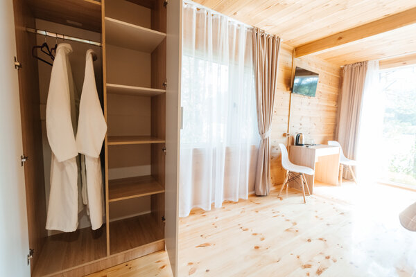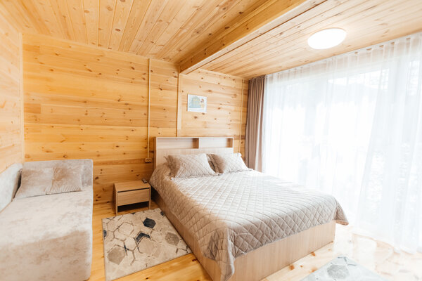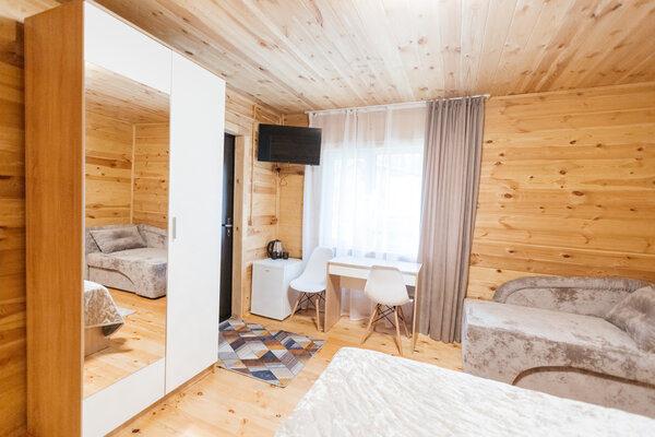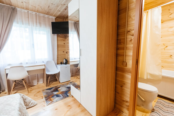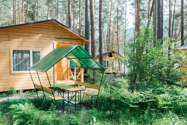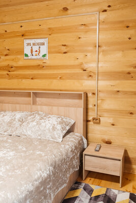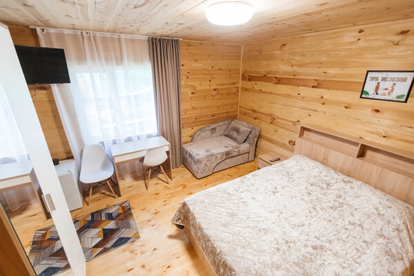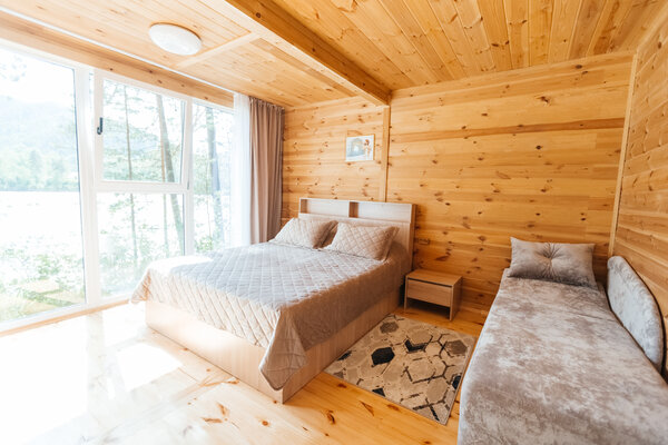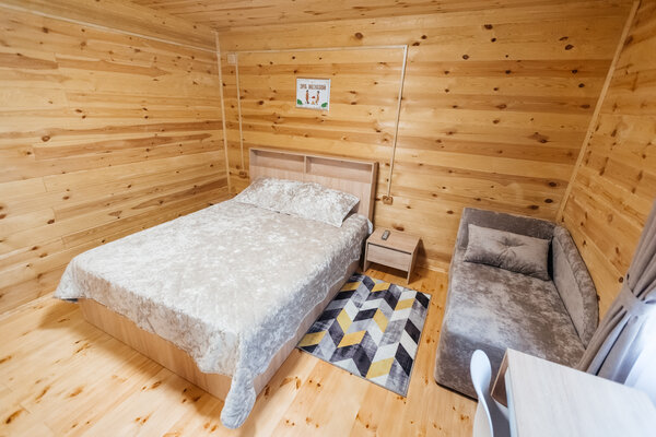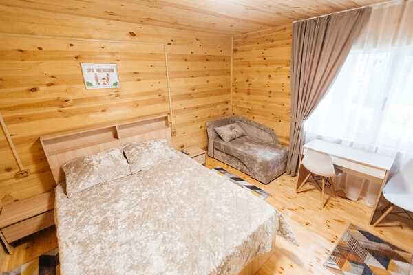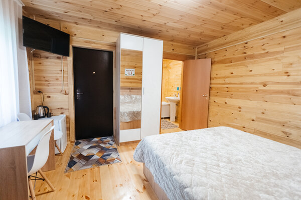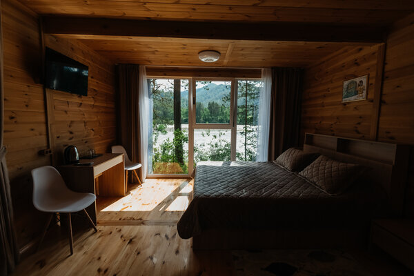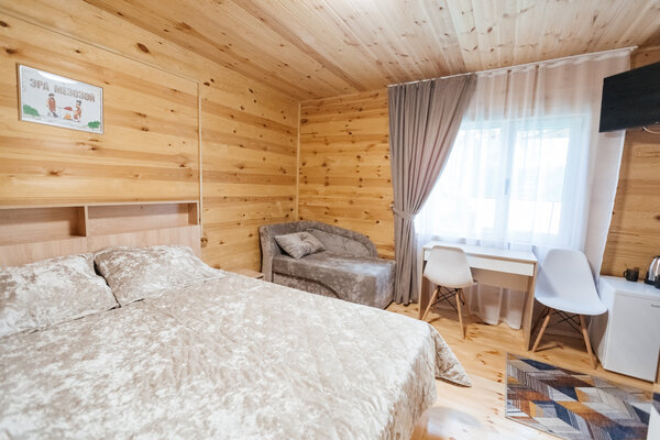 В вашем распоряжении комфортабельные дома, оборудованные всем необходимым для приятного отдыха: двуспальная кровать, односпальный диван, телевизор, холодильник, набор посуды. В собственной ванной комнате вас ждет стандартный набор сантехники и фен. У каждого домика есть уютная индивидуальная беседка с мангалом и проточной водой, где вы сможете отдохнуть на свежем воздухе и насладиться красотами Алтая.