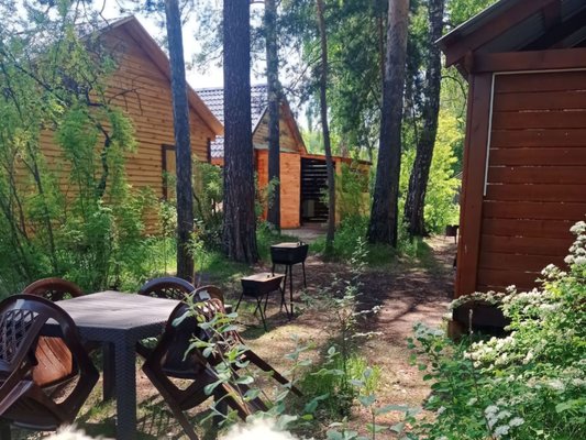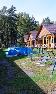 На территории усадьбы предоставляется кедровая бочка-сауна, мангальная зона с беседками, костровая зона, бесплатная парковка, бассейн, спортивный батут и детская площадка с качелями, шведской стеной и горкой. Также предусмотрены детские столы и стулья. Организуются экскурсии.