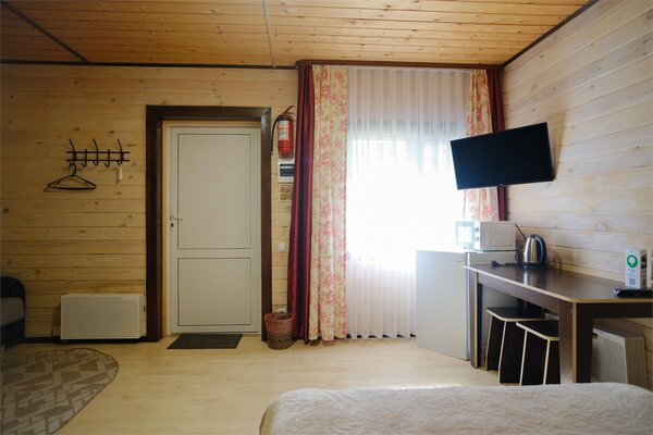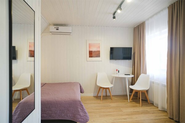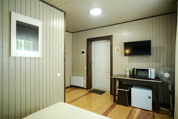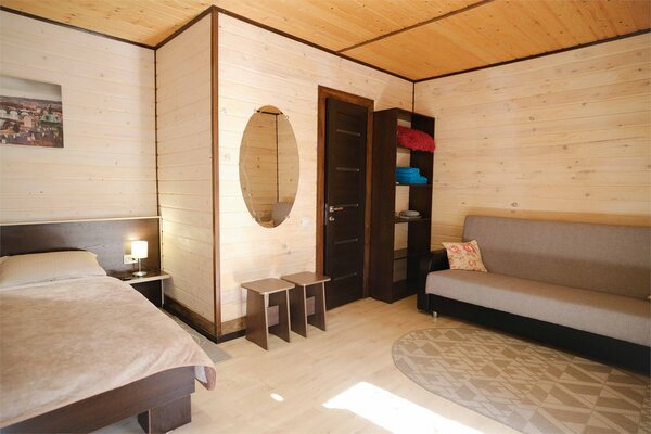 Проживание с собакой декоративных пород весом до 15 кг и возрастом от 1 года возможно только по согласованию с администрацией за дополнительную плату в размере 3000 ₽ за весь период пребывания, а также при наличии ветеринарного паспорта с данными о животном и владельце, вакцинациях и прививках. При размещении на срок более 10 суток стоимость проживания с питомцами удваивается.