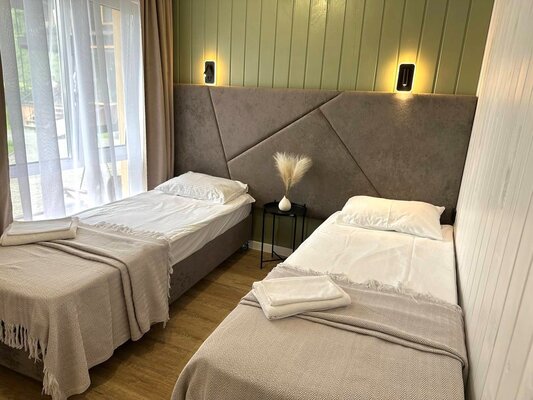 Проживание с собакой декоративных пород весом до 15 кг и возрастом от 1 года возможно только по согласованию с администрацией за дополнительную плату в размере 3000 ₽ за весь период пребывания, а также при наличии ветеринарного паспорта с данными о животном и владельце, вакцинациях и прививках.
