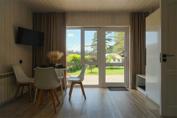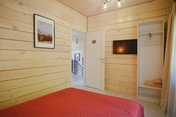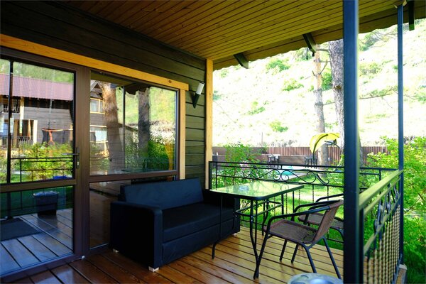 В «Усадьбе Зорькиных» вас ожидает настоящее летнее блаженство: терраса с подогреваемым бассейном, с которой открывается потрясающий вид на горный пейзаж. Уютные шезлонги и зона отдыха приглашают вас провести время в тишине и спокойствии, наслаждаясь лазурным небом.