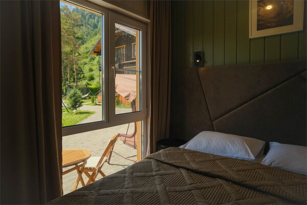 Вас ждет изысканный завтрак с ежедневно обновляющимся меню — от полезных каш до вкусных вафель. После завтрака окунитесь в подогреваемый бассейн на террасе с потрясающим видом на горы или расслабьтесь у уютного костра.
