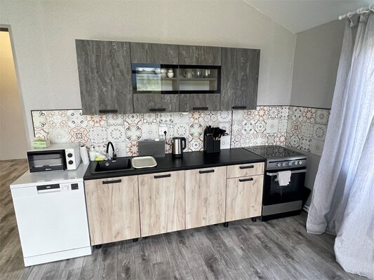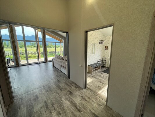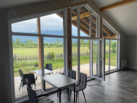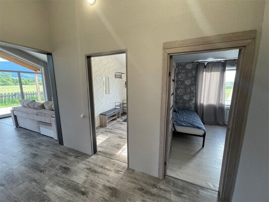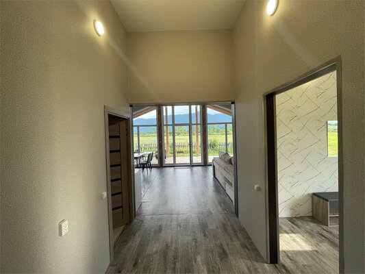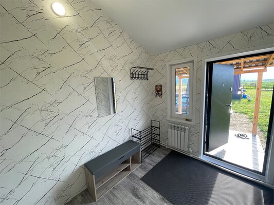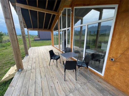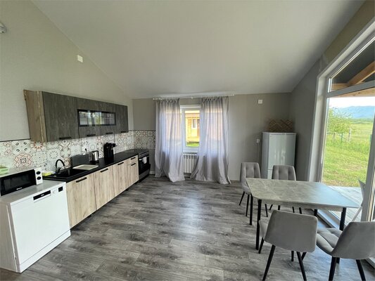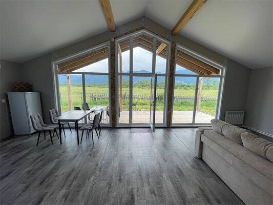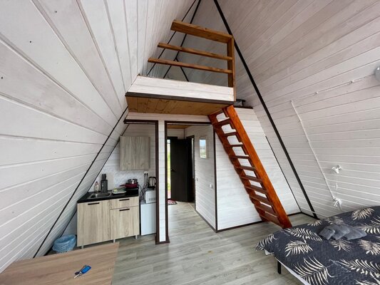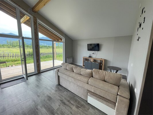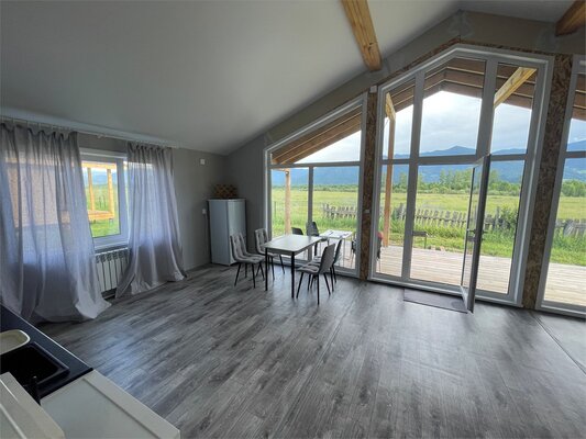 Каждый домик оборудован панорамным остеклением, открывающим великолепный вид на горы, и имеет выход на просторную террасу. Внутри вас ждет полноценная кухонная зона с бытовой техникой и всеми принадлежностями для приготовления пищи, комфортабельные ортопедические матрасы и современный санузел с душем.