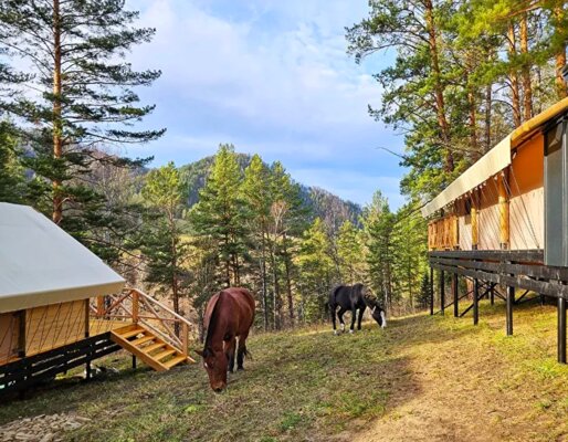Глэмпинг «Вдохни Алтай» — это уединенный оазис спокойствия на берегу горной реки, всего в часе езды от аэропорта Горно-Алтайска по удобной асфальтированной дороге. Здесь, в окружении горной природы, вы найдете идеальное место для отдыха и единения с собой.