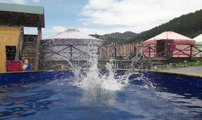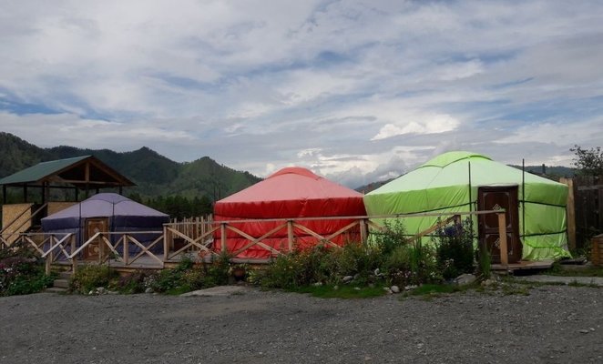 Турбаза состоит из трех коттеджей в которых имеются 2-х, 3-х, 4-х местные номера с видом на реку Катунь. Есть благоустроенные номера с душем, туалетом, раковиной. Есть номера без удобств, санузел для них находится на этаже (душ, туалет, раковина). Также есть 4-х местные юрты, 2-х местные бунгала и места под палатки.