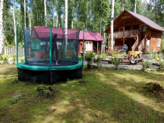 На территории базы: два коттеджа («Яшкин дом» и «Кузькин дом») с 2-6-местными благоустроенными номерами, бесплатный Wi-Fi, холодильники, европейские душ и туалет, бассейн, летняя кухня, столики, лавочки, а также мангал, казан для приготовления еды на костре и т.д.