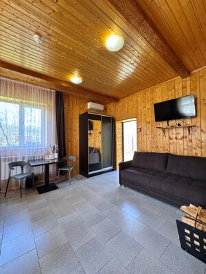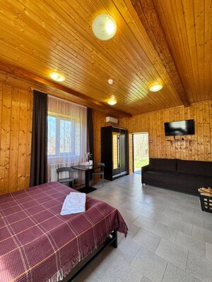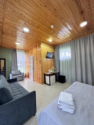 Баня расположена в двухместном домике с баней.