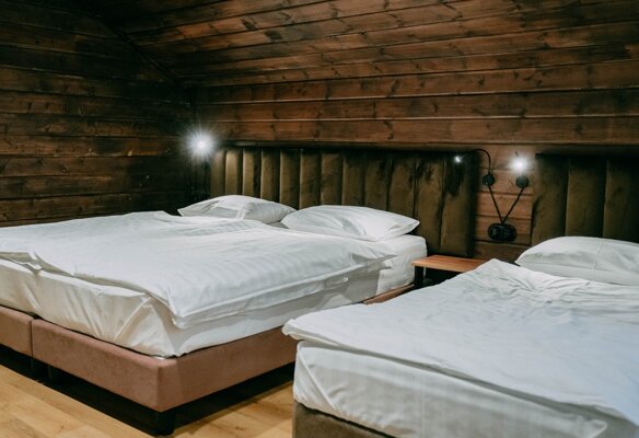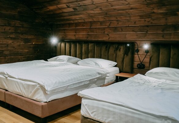 Каждый коттедж идеально подходит для размещения 5-7 человек и оборудован всем необходимым для беззаботного отдыха. К вашим услугам персональная мангальная зона у каждого домика, где можно в любое время насладиться ароматным шашлыком. Внутри вы найдете современные плазменные телевизоры со спутниковым ТВ, холодильники, чайники и бесплатный Wi-Fi. Особое внимание мы уделили деталям: вас ждут качественное новое постельное белье, мягкие махровые полотенца и уютные одеяла — всё приятное на ощупь и источающее тонкий аромат свежести.