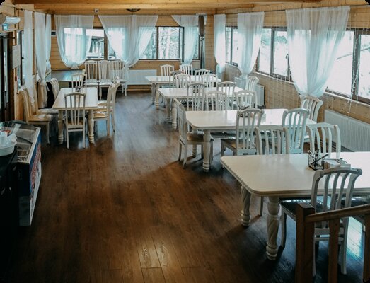 На территории комплекса работает просторная столовая, где для гостей готовят вкусное и сытное меню.