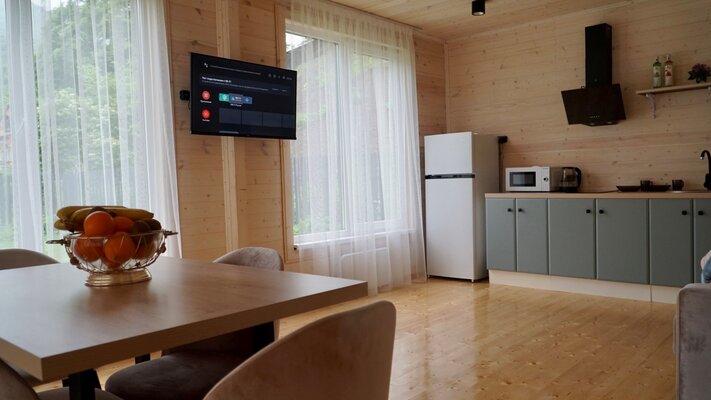 Все окна в доме панорамные, с великолепным видом на горы. Максимальное размещение в доме —6 человек.