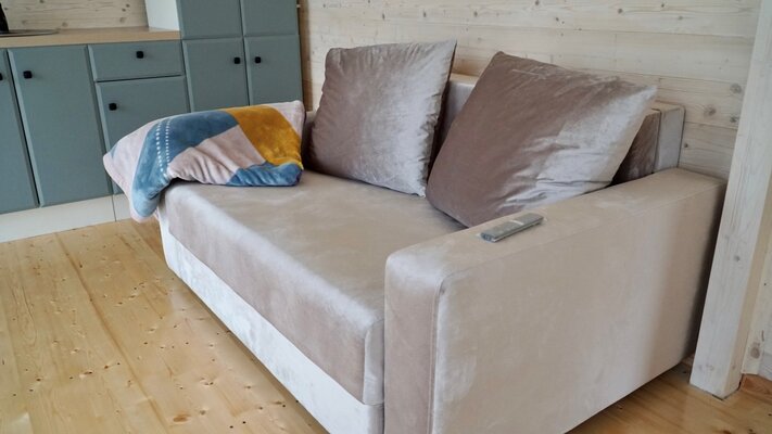 У каждого дома просторный двор на 6 автомобильных мест, есть мангальная зона на 25 человек, а также открытая веранда. На втором этаже дома расположены две спальни: в одной — двуспальная кровать с ортопедическим матрасом, а в другой - две односпальные кровати. На первом этаже есть раскладной диван.