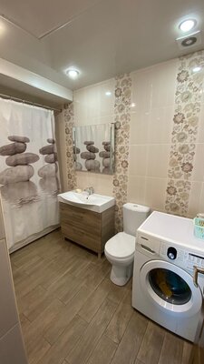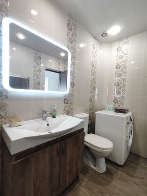 Ванная комната оборудована новейшей сантехникой, феном, стиральной машиной и комплектом полотенец, заботясь о вашем комфорте. Полностью оборудованная кухня позволит вам готовить любимые блюда по своему вкусу.