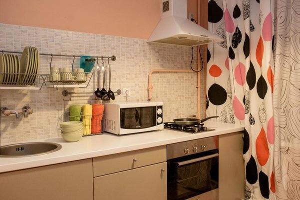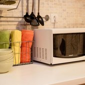 На кухне можно приготовить домашние пищу с помощью плиты, духовки или микроволновой печи. На дом можно будет заказать еду через доставку. В шаговой доступности расположены продуктовые магазины. К тому же поблизости есть кафе и рестораны.