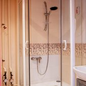 У гостей есть возможность отдохнуть в комфортной комнате выполненной в светлых тонах. Здесь имеется мягкая и удобная кровать, где Вы можете отоспаться после длительного переезда, телевизор и сплит-система. Также оборудована собственная ванная с душевой кабиной, санузлом, раковиной, феном, предоставляются полотенца.