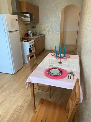 Для удобства проживающих обустроена кухня: холодильник, микроволновая печь, электрический чайник, плита. Можно приготовить еду самостоятельно, а приобрести продукты в ближайших магазинах.
