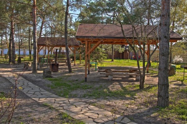 Большой и дружной компанией можно собраться в беседке на свежем воздухе. В летнее время работает бассейн, вокруг которого расположены лежаки и зона для загара. Есть собственный песчаный пляж с пологим спуском. Особой популярностью у наших постояльцев пользуется банный комплекс, где можно выбрать несколько вариантов парной.