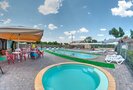Небольшой плавательный бассейн для взрослых и детей входит в комплекс открытых бассейнов на территории аквазоны. Рядом находятся места для отдыха под большими зонтами. Работает бар, есть душ.