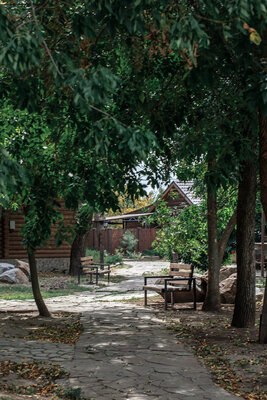 Проживание здесь — это погружение в аутентичный деревенский стиль, где каждый уютный домик оборудован современными сплит-системами для вашего комфорта. Для тех, кто ценит особый уровень уединения и расслабления, доступны варианты с собственной дровяной баней, приватным двориком и каменным мангалом — идеальное решение для полноценного отдыха на природе.
