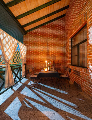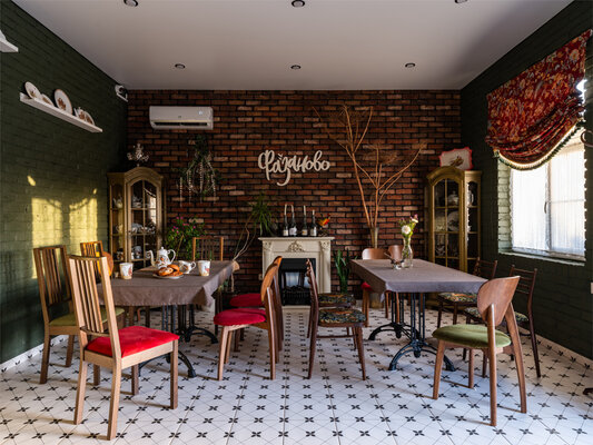Обеденная зона с мягкими стульями и столами предлагает живописный вид на территорию усадьбы. Очаровательный декор создает атмосферу, превращая каждый прием пищи в особенное событие.