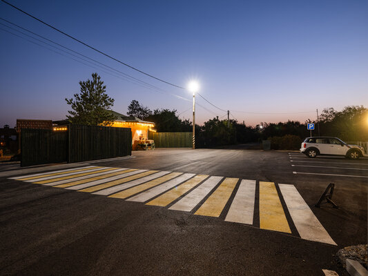 Гостей ждет хорошо освещенная асфальтированная парковка, оборудованная современной системой видеонаблюдения и разметкой.