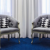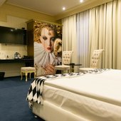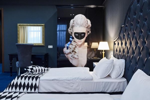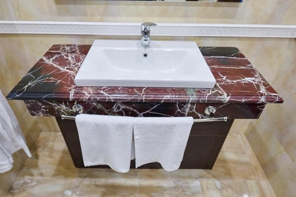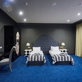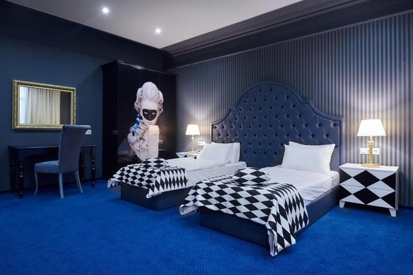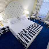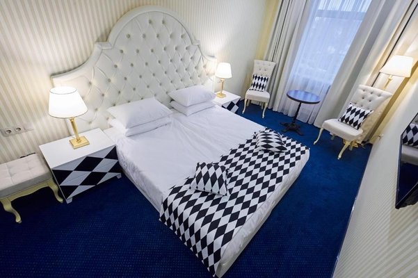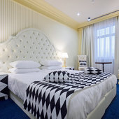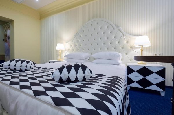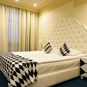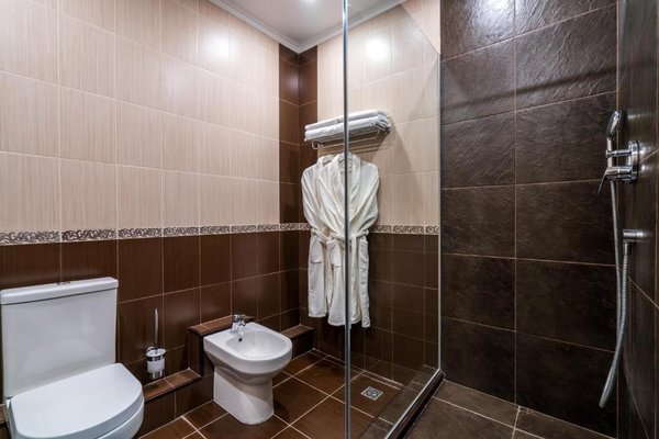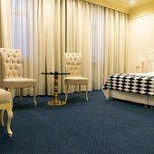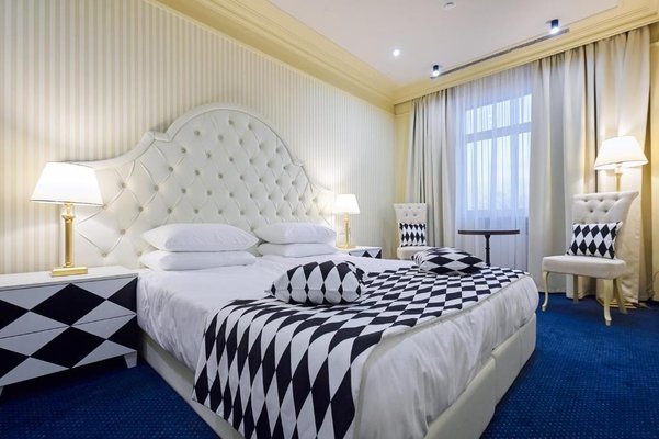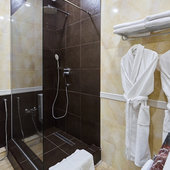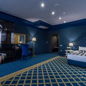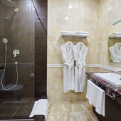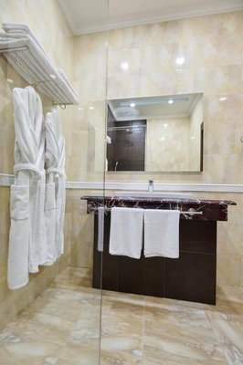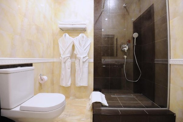 Номера с современным ремонтом, в каждом из них большая удобная кровать, вещевой шкаф, прикроватные тумбочки, стационарный телефон для связи с персоналом, телевизор, журнальный столик и кресло. В ванной комнате есть все необходимые удобства: душевая кабина, раковина, туалет, биде, набор полотенец и халаты.