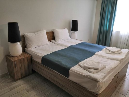 Для размещения предлагаются номера различной категории и вместимости. Во всех комнатах имеется современная мебель, ЖК-телевизор, индивидуальная система кондиционирования. В большинстве апартаментов есть собственная ванная комната с душем туалетом и раковиной.