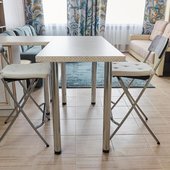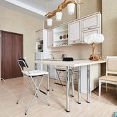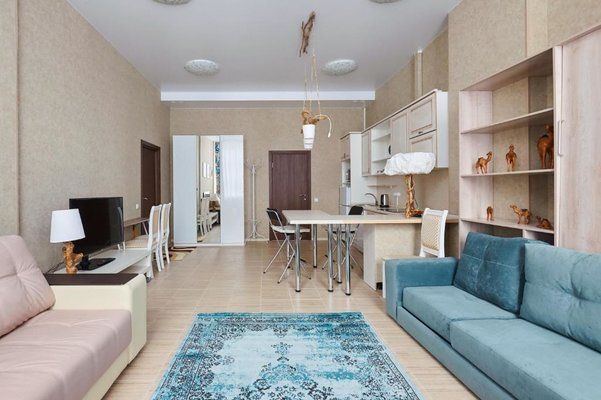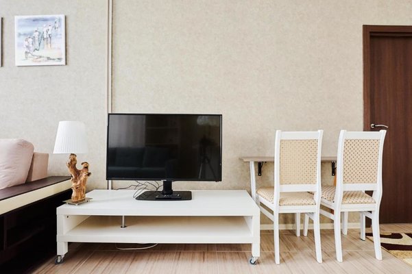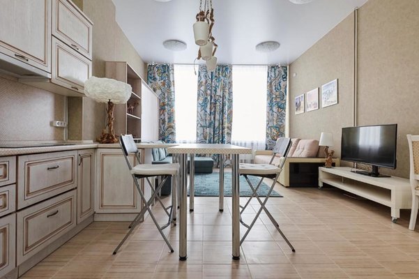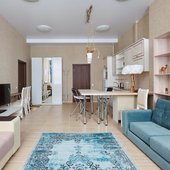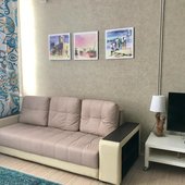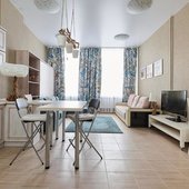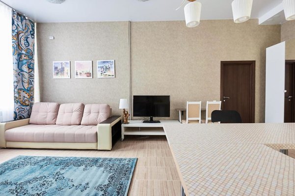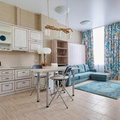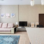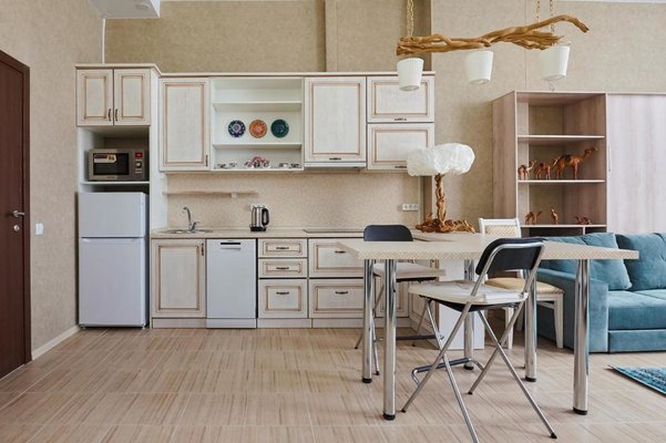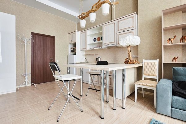 Для размещения предлагаются комфортабельные апартаменты, вместимостью до четырех человек. Квартира оформлена в индивидуальном стиле, укомплектована удобными кроватями и функциональной мебелью. Собственный санузел оснащен качественной сантехникой, феном, стиральной машиной и гигиеническими принадлежностями.