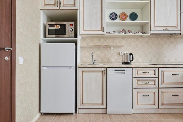 На полностью оборудованной кухне можно самостоятельно приготовить пищу. Рядом расположены кафе, столовые и рестораны, где гости могут приятно провести время, отведать изысканные блюда интернациональной кухни, заказать напитки и легкие закуски.