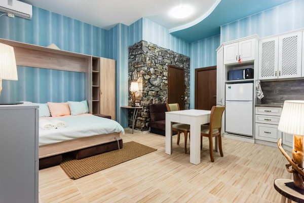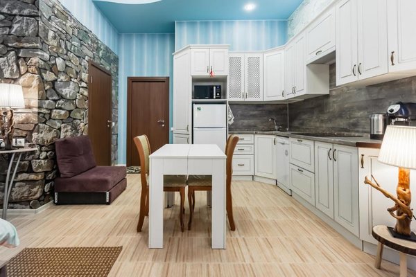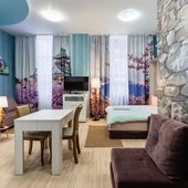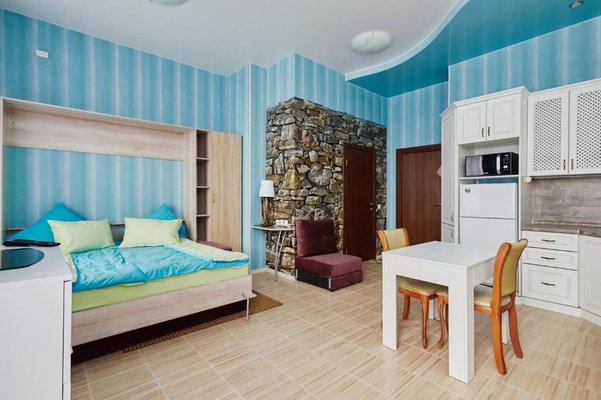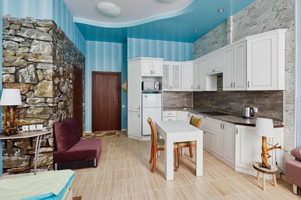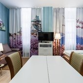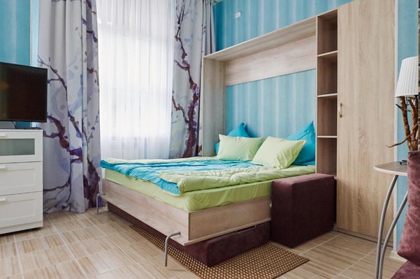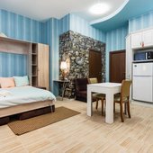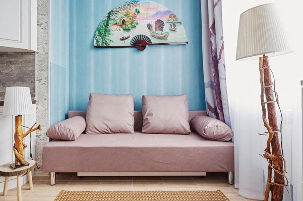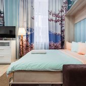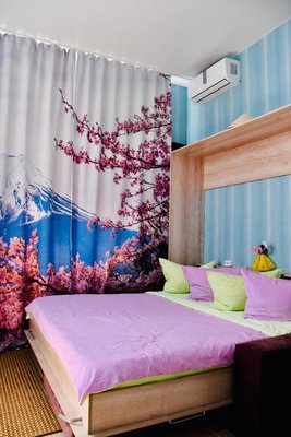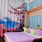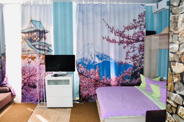 Апартамент "Сакура" входит в блок апартаментов на 1 этаже с отдельным входом. Апартамент выполнен в восточном стиле, два больших окна, высокие потолки, просторный санузел.