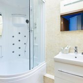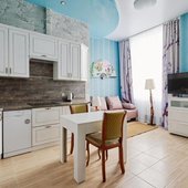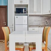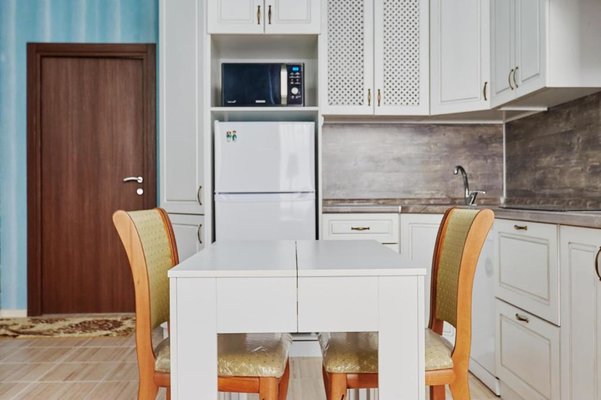 Сплит система, SMART телевизор, скоростной WiFi, полноценная кухня : холодильник, микроволновая печь, духовка, кофеварка, посудомоечная машина, плита, посуда. Санузел с новой сантехникой, душевой кабиной. Имеется фен, проточный фильтр для воды. В этом апартаменте может разместиться семья из четырех человек или два самостоятельных гостя.