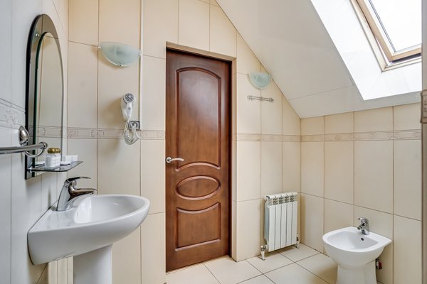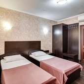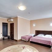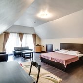 Всего насчитывается две категории номерного фонда. Каждый из них оформлен в классическом стиле. Любая деталь интерьера подтверждает солидность заведения. В комнатах присутствует вся необходимая мебель и техника, а также бесплатное подключение к беспроводному интернету.