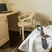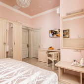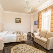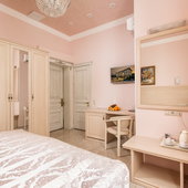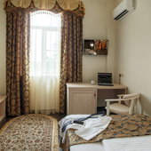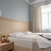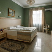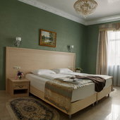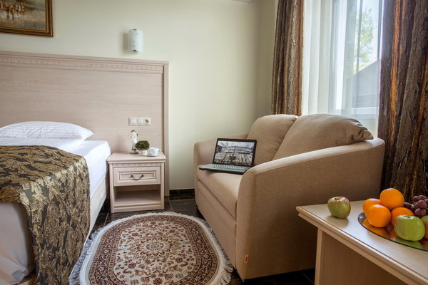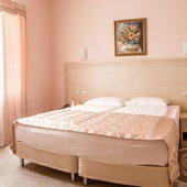 Номера различной категории подготовлены для размещения гостей. В каждом их них установлена качественная мебель с ортопедическим матрасом и современная техника. Интерьер выполнен в индивидуальном стиле и светлых тонах.