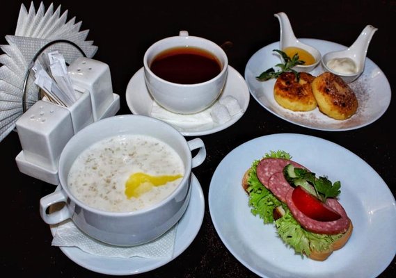 Питание постояльцев организовано в ресторане, который работает в отеле. Здесь можно выбрать и заказать понравившиеся блюда европейской и национальной кухни.