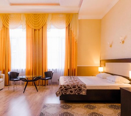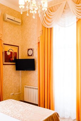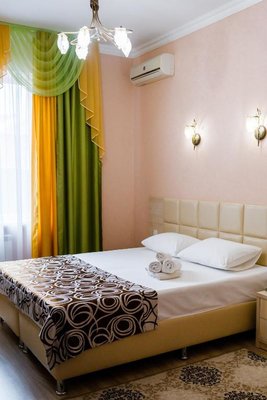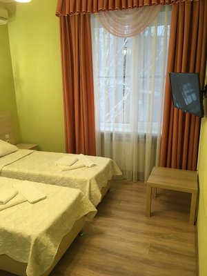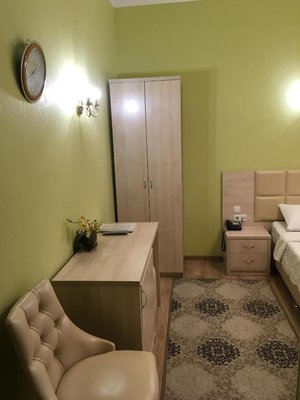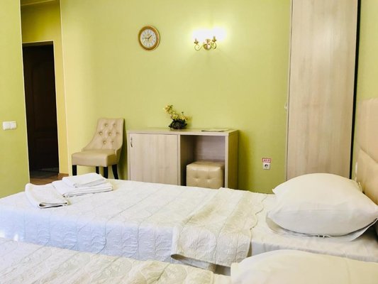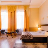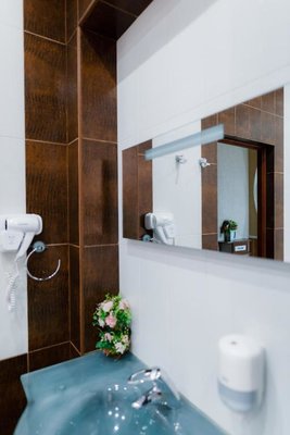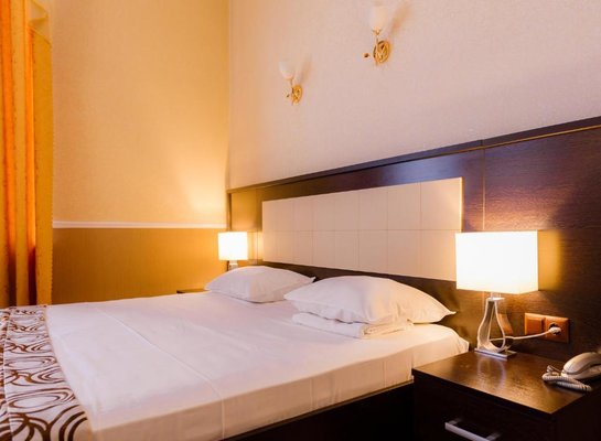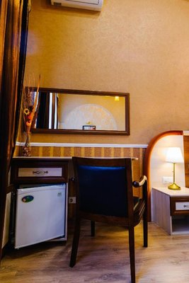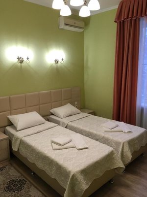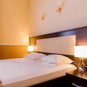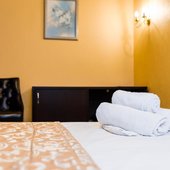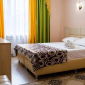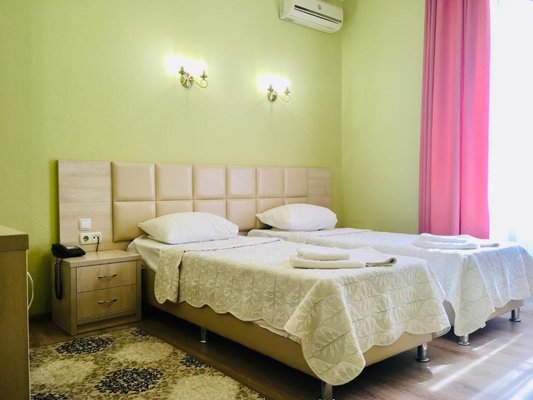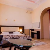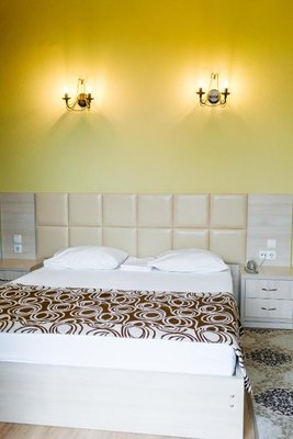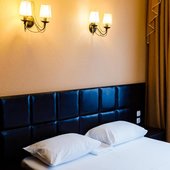 Комфортабельные номера в светлых тонах располагают необходимыми удобствами: кровать, прикроватные тумбы, шкафы, телевизоры с плоским экраном. Также имеются холодильник, кондиционер, спутниковое ТВ. Совмещенный санузел с душевой кабинкой или ванной, также раковина.